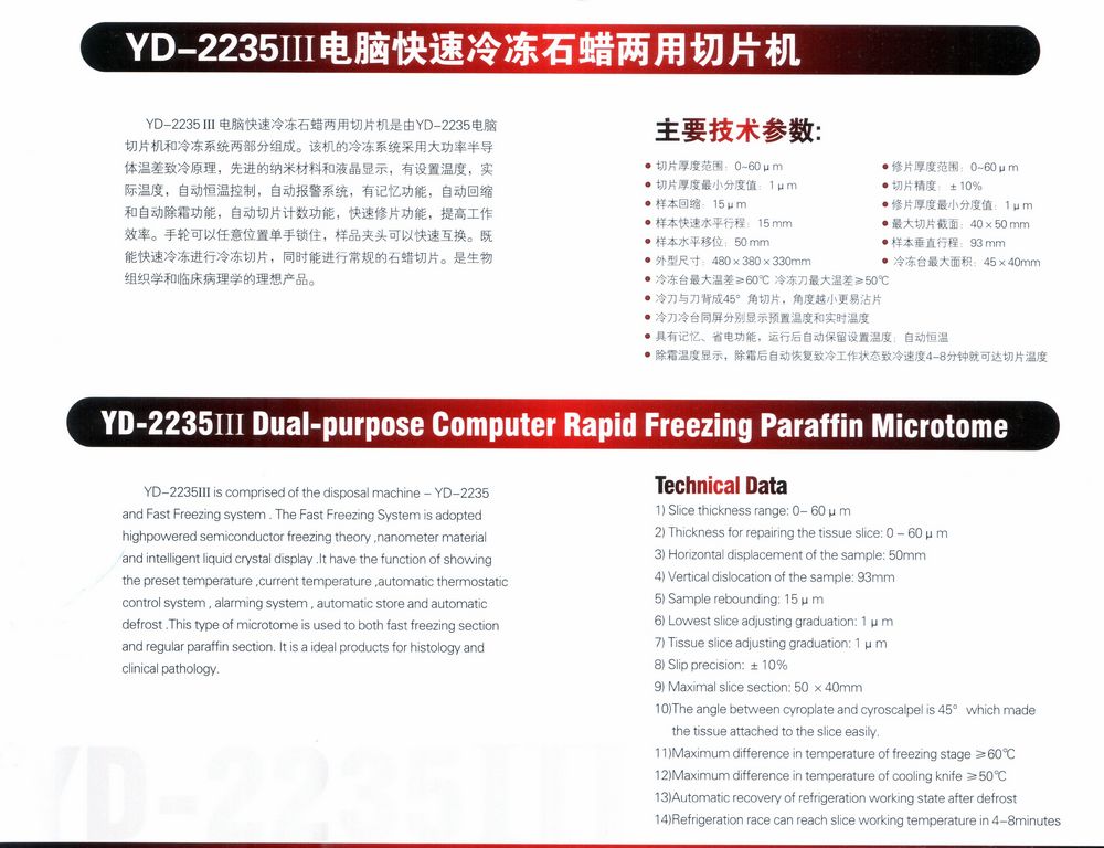 YD-2235Ⅲ電腦快速冷凍石蠟兩用切片機(jī)