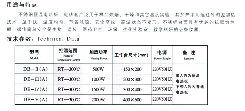 DB型不銹鋼電熱板